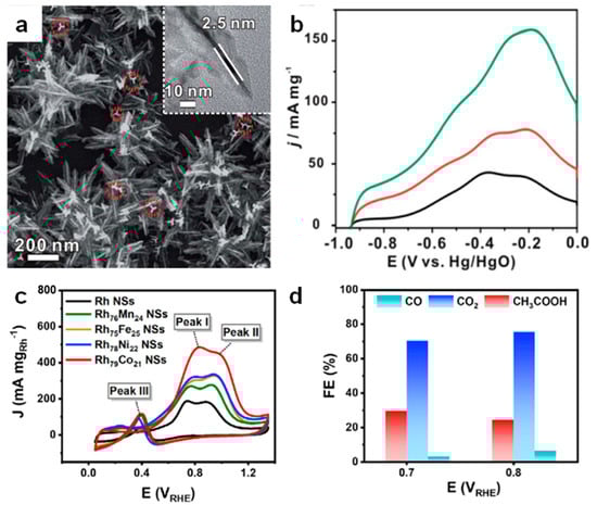 - Li, H.; Fan, Q.; Ye, J.; Cao, Z.; Ma, Z.; Jiang, Y.; Zhang, J.; Cheng, J.; Xie, Z.; Zheng, L. Excavated Rh nanobranches boost ethanol electro-oxidation. Mater. Today Energy 2019, 11, 120–127. [Google Scholar] [CrossRef]
