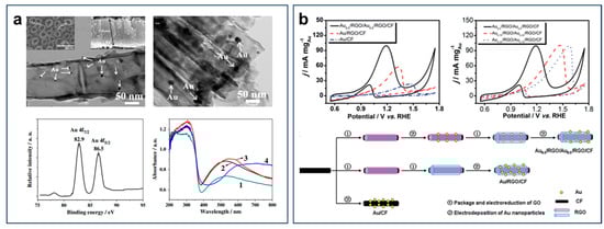- Wang, C.; Wang, H.; Zhai, C.; Ren, F.; Zhu, M.; Yang, P.; Du, Y. Three-dimensional Au0.5/reduced graphene oxide/Au0.5/reduced graphene oxide/carbon fiber electrode and its high catalytic performance toward ethanol electrooxidation in alkaline media. J. Mater. Chem. A 2015, 3, 4389–4398. [Google Scholar] [CrossRef]
