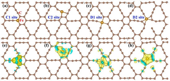 3.1. Fe Atoms Doped into γ-Graphyne