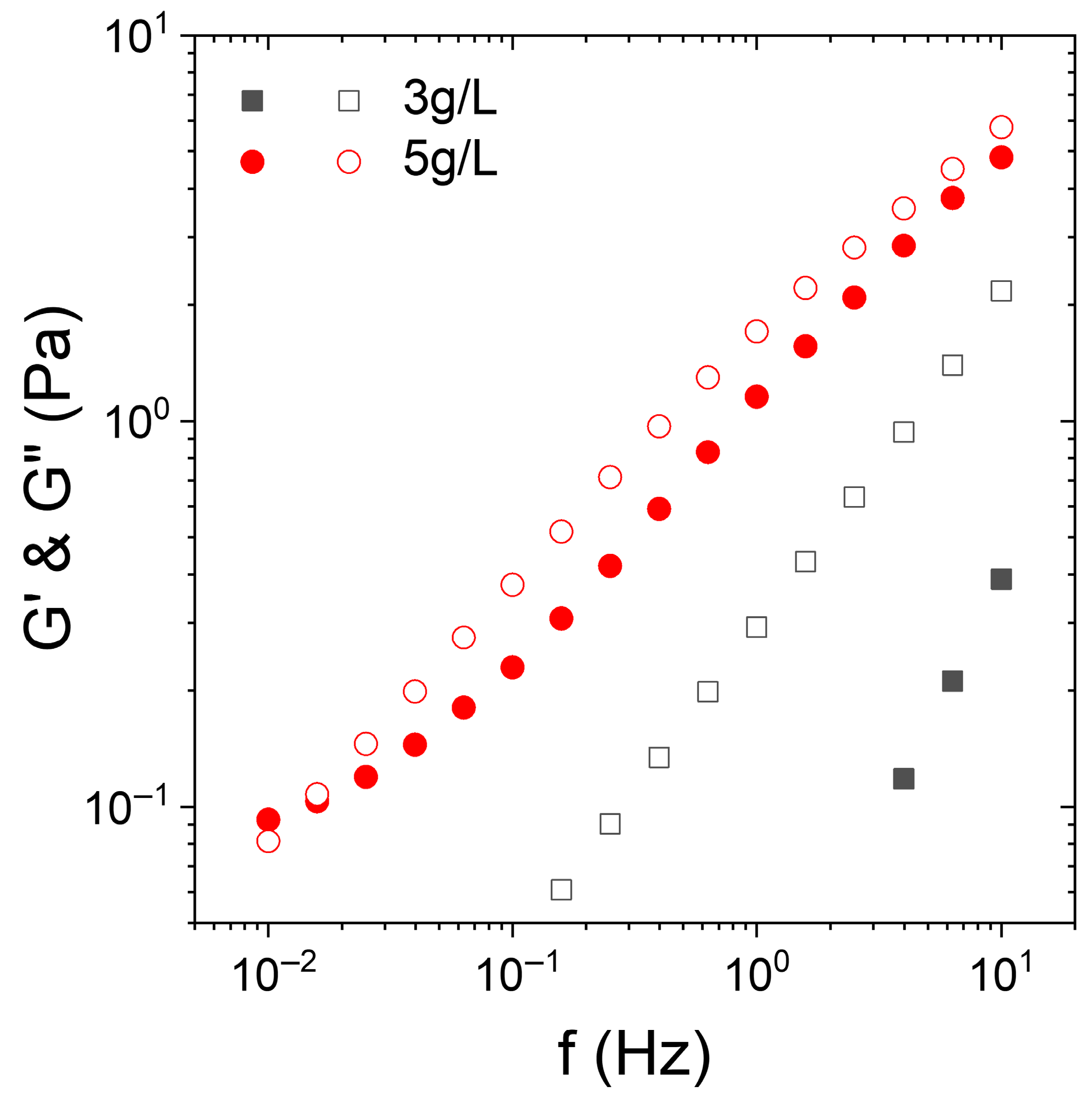 - Jaber, A.; Roques-Carmes, T.; Marchal, P.; Hamieh, T.; Benyahia, L. Interfacial viscoelastic moduli in a weak gel. J. Colloid Interface Sci. 2022, 622, 126–134. [Google Scholar] [CrossRef]