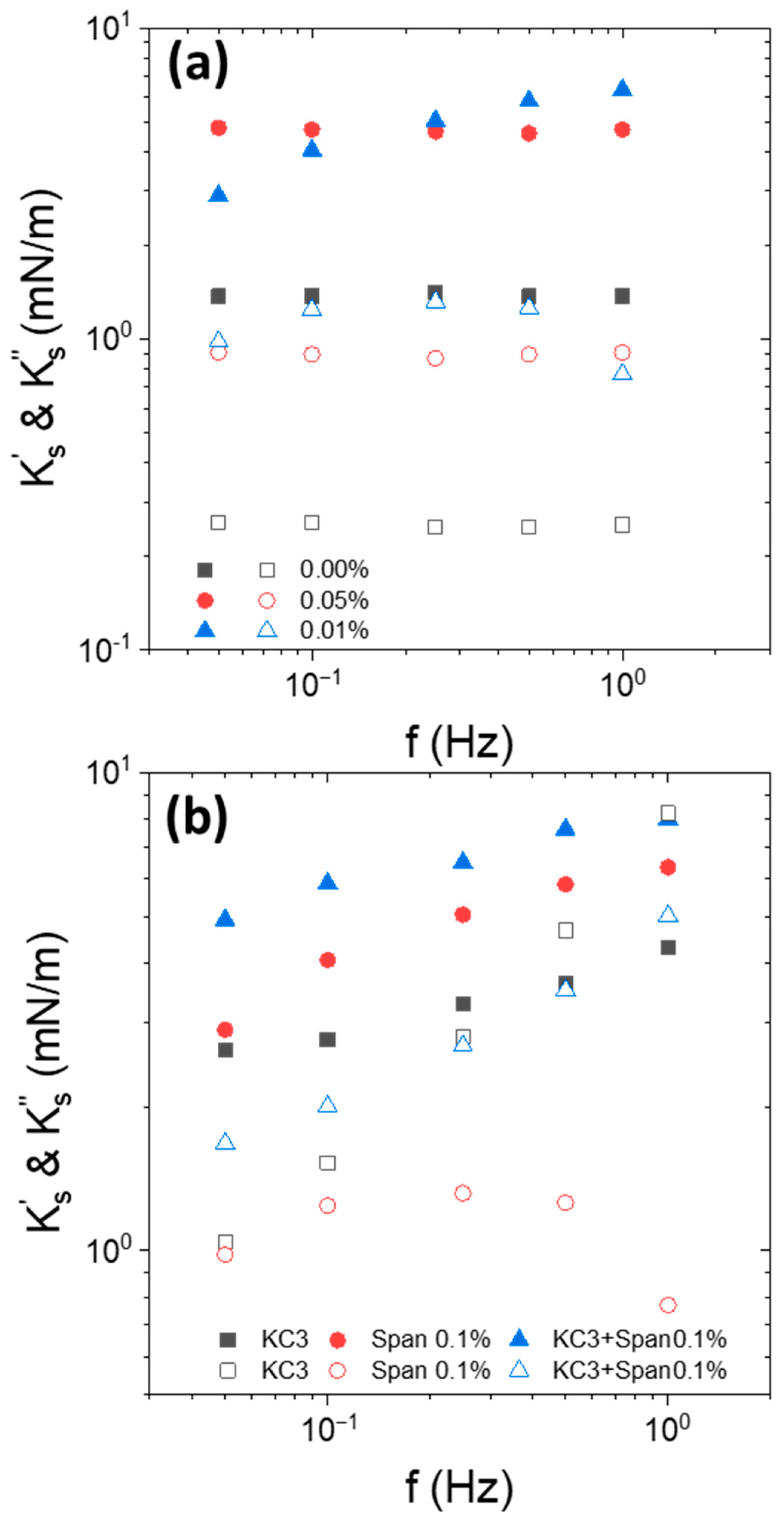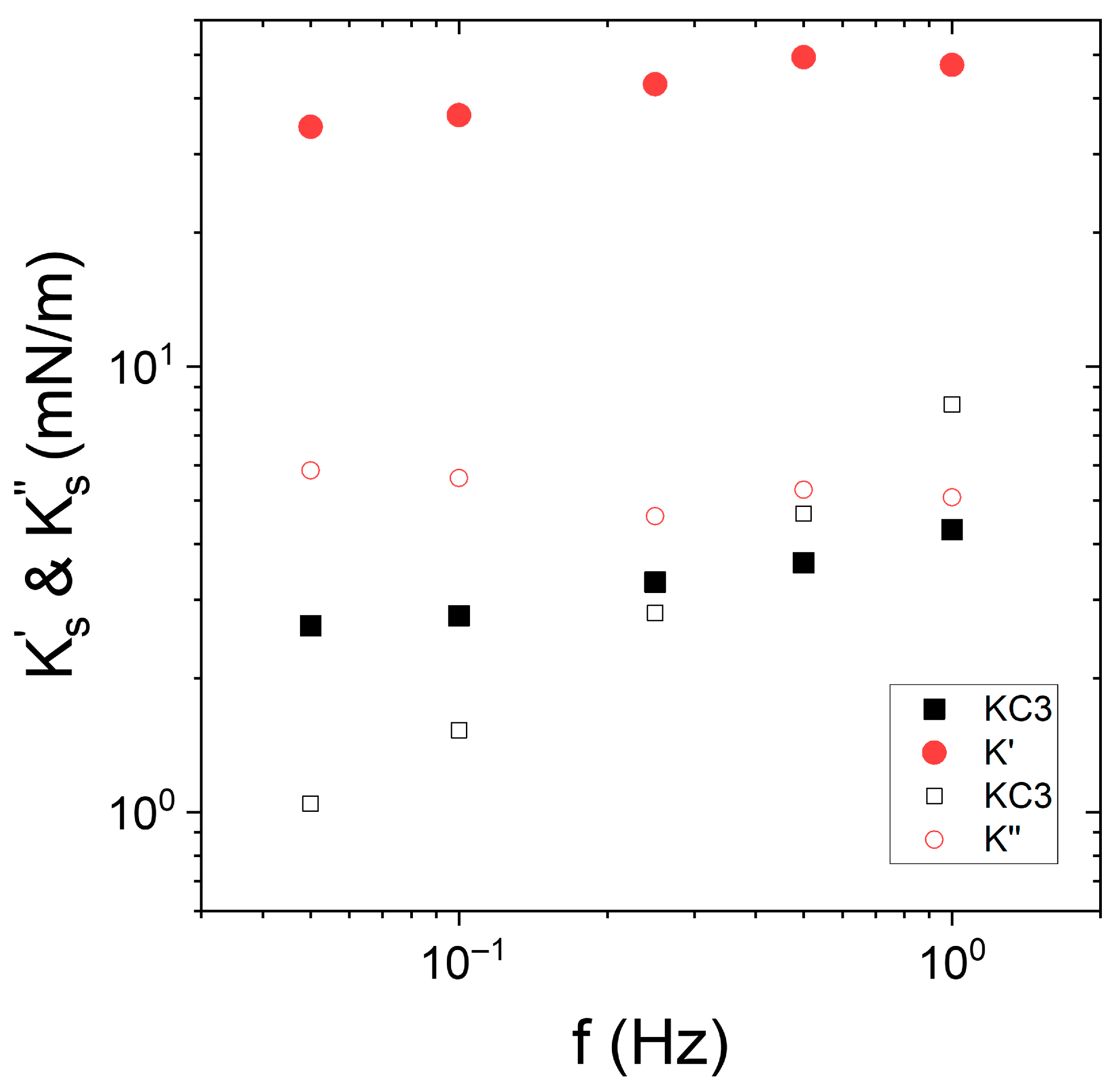 3.2.2. Interfacial Viscoelasticity of Span-Laden O/KC-W Interfaces