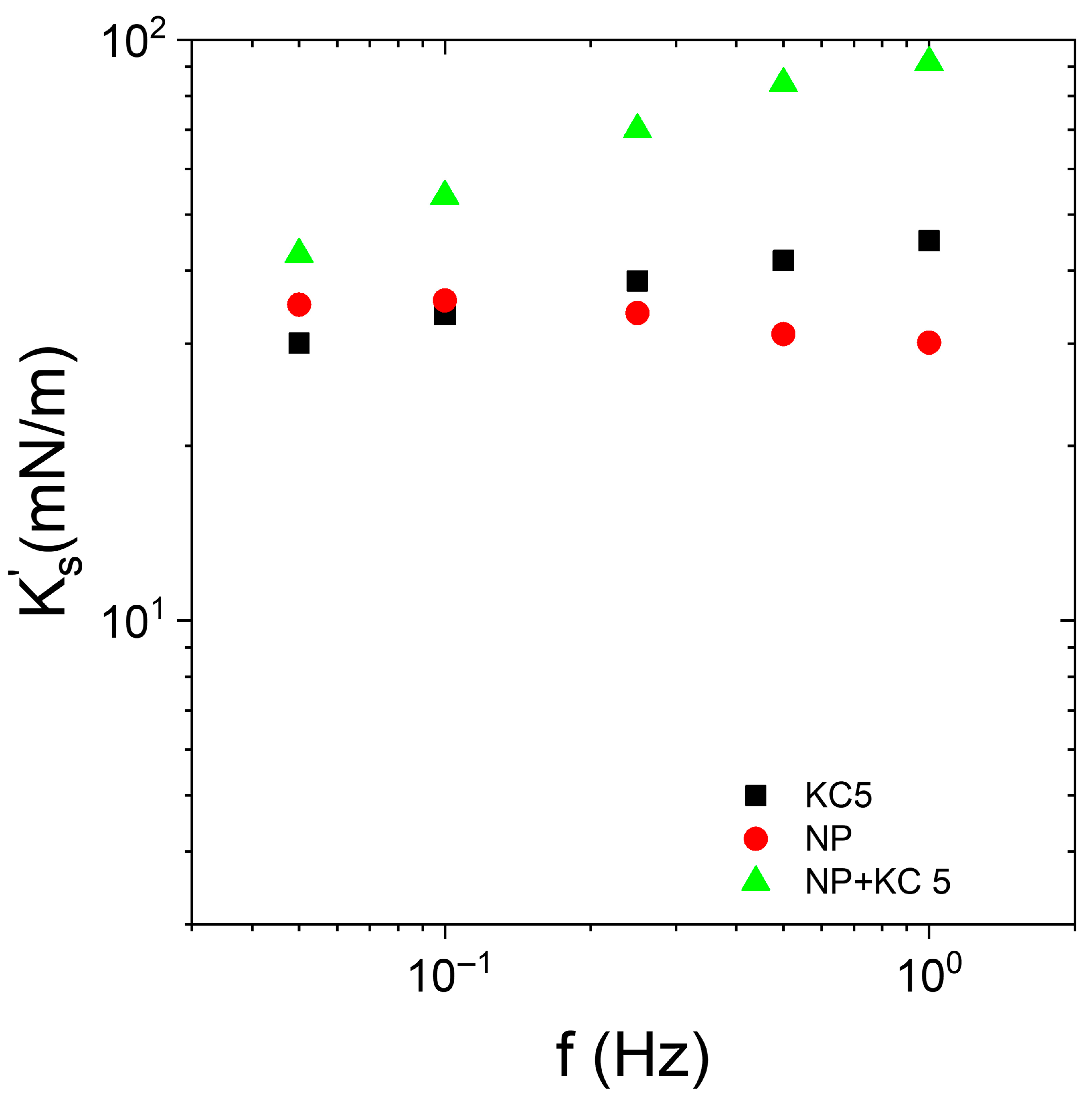 3.3.2. Interfacial Viscoelasticity of NP-Laden O/KC-W Interfaces