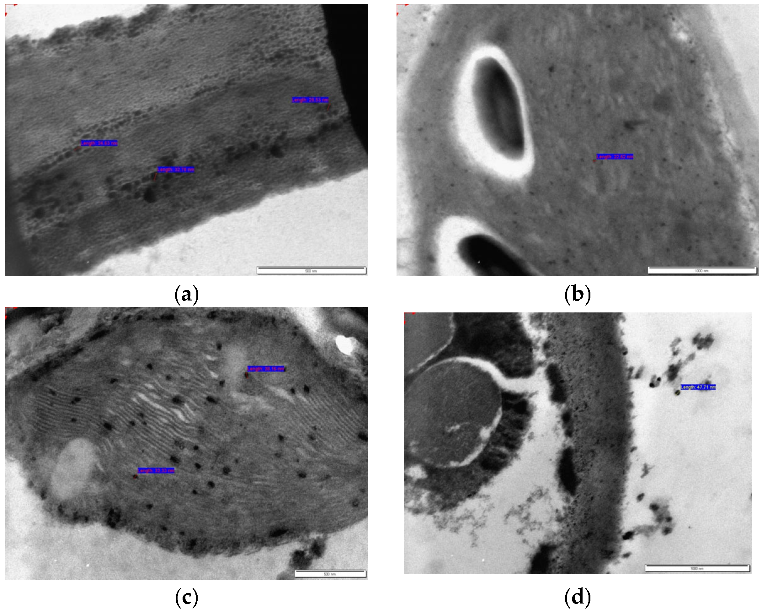 - Huang, D.; Dang, F.; Huang, Y.; Chen, N.; Zhou, D. Uptake, translocation, and transformation of silver nanoparticles in plants. Environ. Sci. Nano 2022, 9, 12–39. [Google Scholar] [CrossRef]