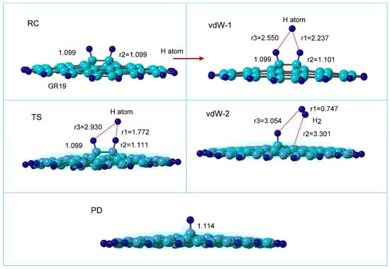 RC[H(radical) + H-(GR)-H] → vdW-1 → TS → vdW-2 → PD[(GR)-H + H2]