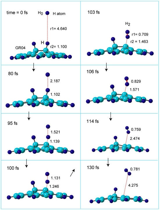 In case of a H2 release process, the H atom is generated again by discharge of H2. The H atom reacts with the H atom on the GR surface and H2 is easily formed by the H abstraction reaction: