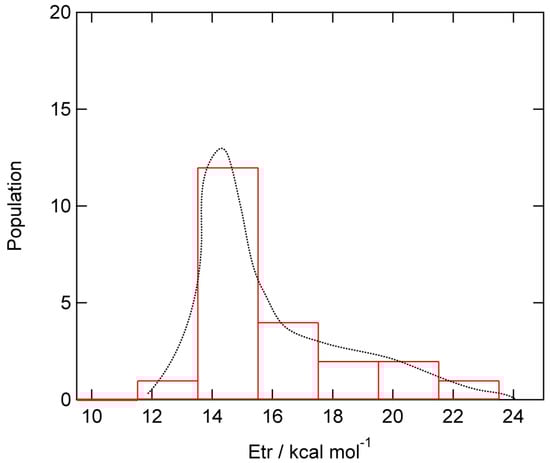 Distribution of translational energy of product H2 (Etr) formed by the H abstraction reaction for H + H-(GR)-H → H2 + (GR)-H. Direct AIMD calculation were performed at the CAM-B3LYP/6-31G(d) level.