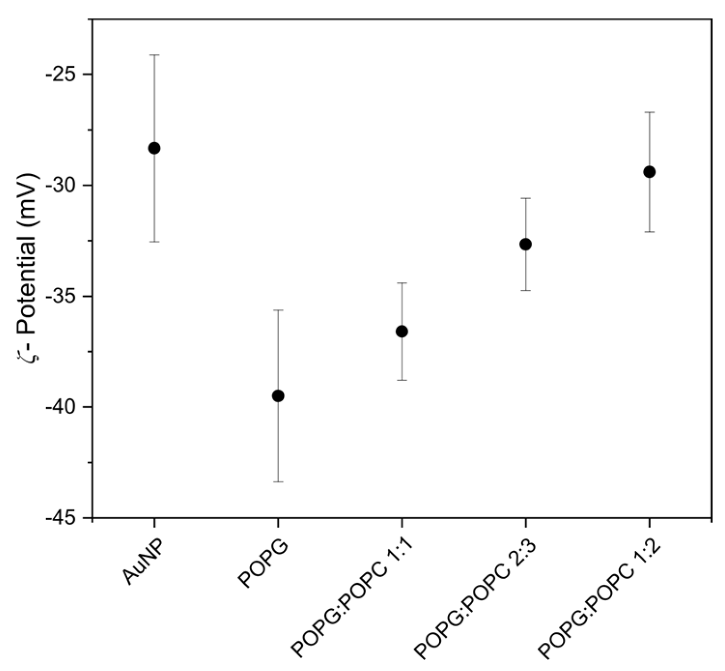 POPG:POPC | 1:0 | 1.8 ± 0.6 | 26 ± 1 | 0.20 ± 0.05 |