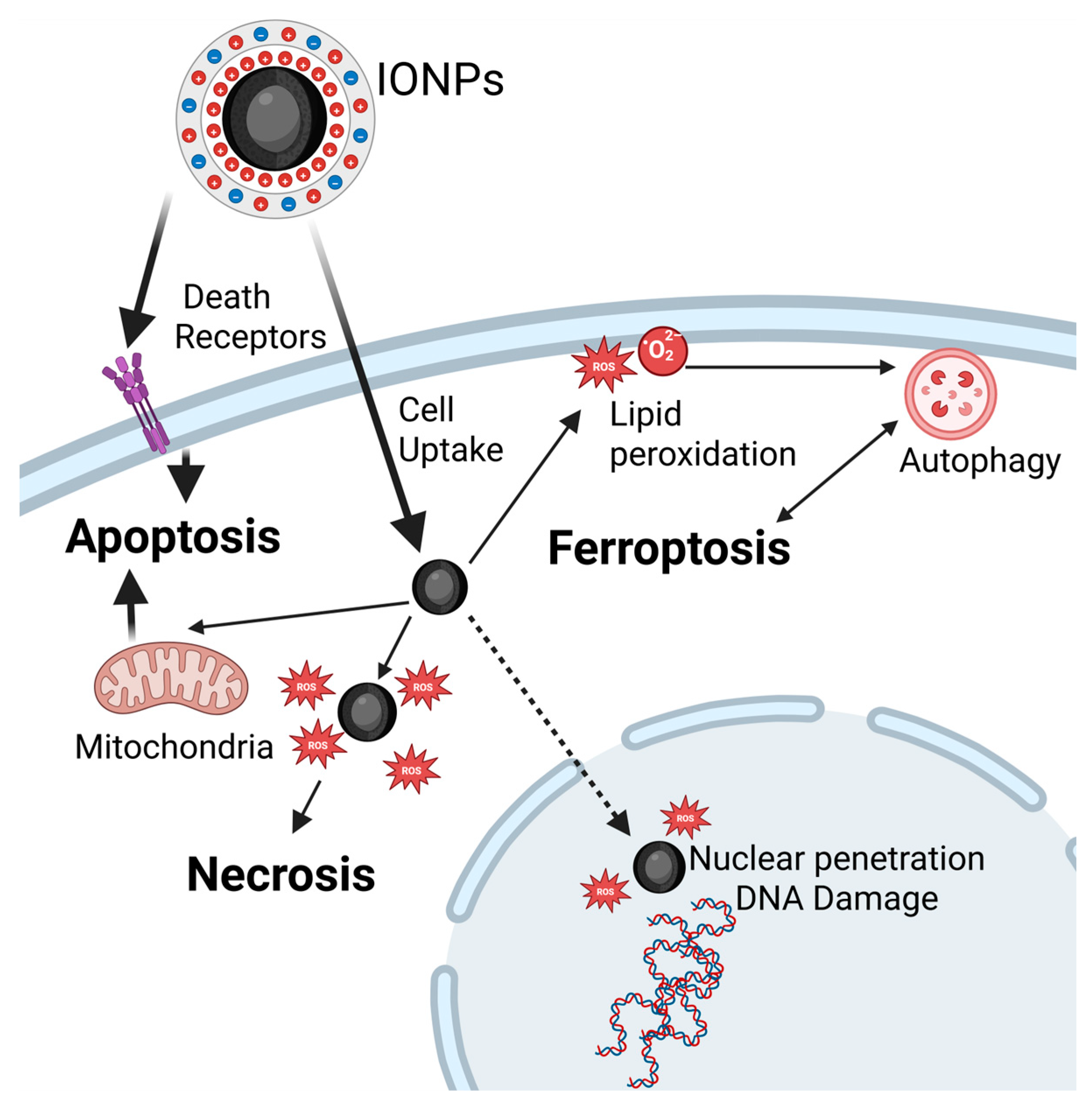 - Luo, C.; Li, X.; Yan, H.; Guo, Q.; Liu, J.; Li, Y. Iron Oxide Nanoparticles Induce Ferroptosis under Mild Oxidative Stress in Vitro. Sci. Rep. 2024, 14, 31383. [Google Scholar] [CrossRef]