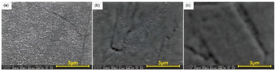 Environmental Scanning Electron Microscopy (ESEM) images of Nb/Cu films deposited at 450 °C by DC magnetron sputtering: (a) as-deposited (b) after laser annealing at 1.30 J/cm2 (one cycle), and (c) after laser annealing at 1.30 J/cm2 (five cycles). Reproduced from [73].