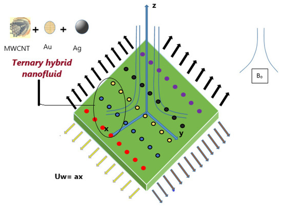 - Hasnain, J.; Abid, N. Numerical investigation for thermal growth in water and engine oil-based ternary nanofluid using three different shaped nanoparticles over a linear and nonlinear stretching sheet. Numer. Heat Transf. Part A Appl. 2022, 83, 1365–1376. [Google Scholar] [CrossRef]