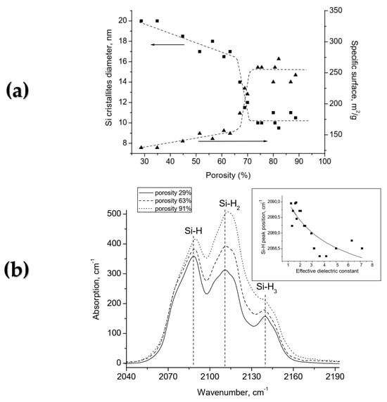 - Lysenko, V.; Vitiello, J.; Remaki, B.; Barbier, D.; Skryshevsky, V. Nanoscale morphology dependent hydrogen coverage of meso-porous silicon. Appl. Surf. Sci. 2004, 230, 425–430. [Google Scholar] [CrossRef]