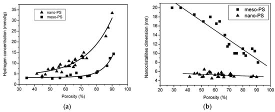 Further investigations utilizing temperature-programmed desorption (TPD) have demonstrated the release of hydrogen from n-type PS, although the precise hydrogen storage capacity remains undetermined [90]. In contrast, a combined FTIR and TPD analysis of p+-type PS has provided a quantitative estimation of hydrogen desorption, indicating that approximately 2 mmol/g of hydrogen is released within the 40–850 °C temperature range [91]. These findings suggest that p+-PS surfaces are predominantly hydrogen-terminated, with minimal exposure of Si atoms as adsorption sites. A comparative analysis of FTIR and TPD mass spectrometry data confirms that the majority of desorbed hydrogen originates from surface-bound SiHx species, emphasizing the critical role of surface chemistry in governing hydrogen storage and release properties.