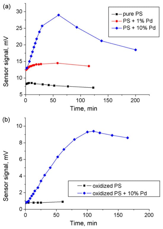 - Manilov, A.I.; Alekseev, S.A.; Skryshevsky, V.A.; Litvinenko, S.V.; Kuznetsov, G.V.; Lysenko, V. Influence of palladium particles impregnation on hydrogen behavior in meso-porous silicon. J. Alloys Compd. 2010, 492, 466–472. [Google Scholar] [CrossRef]
