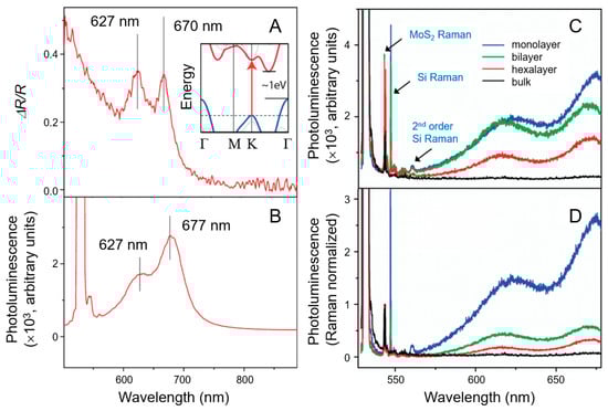 - Splendiani, A.; Sun, L.; Zhang, Y.; Li, T.; Kim, J.; Chim, C.Y.; Galli, G.; Wang, F. Emerging Photoluminescence in Monolayer MoS2. Nano Lett. 2010, 10, 1271–1275. [Google Scholar] [CrossRef] [PubMed]