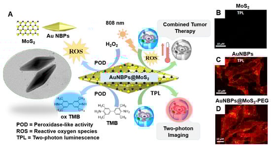 - Maji, S.K.; Yu, S.; Chung, K.; Sekkarapatti Ramasamy, M.; Lim, J.W.; Wang, J.; Lee, H.; Kim, D.H. Synergistic Nanozymetic Activity of Hybrid Gold Bipyramid–Molybdenum Disulfide Core@Shell Nanostructures for Two-Photon Imaging and Anticancer Therapy. ACS Appl. Mater. Interfaces 2018, 10, 42068–42076. [Google Scholar] [CrossRef]