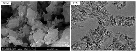 SEM and TEM images of nano-Al2O3.