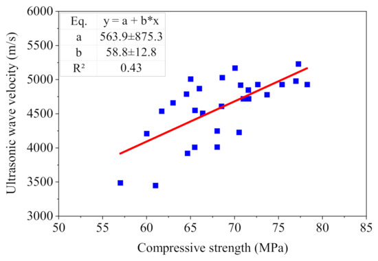 Relationship between ultrasonic wave velocity and compressive strength.