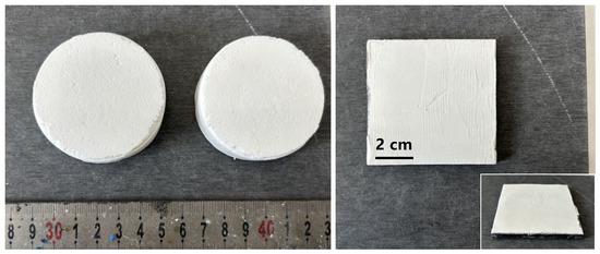 The thermal conductivity of the samples of the foamy aerogel composites was investigated using guarded hot plate apparatus, manufactured by Impal Measurement and Control Equipment Co., Ltd., Guangzhou, China, which complies with the GB/T 10294-2008/ISO 8302:1991 standard [40]. The thermal conductivity measurements were taken at the designated temperature using two identical specimens (300 mm × 300 mm × 15 mm) which had been thoroughly dried beforehand. Temperature difference tests were conducted on MGA series coatings of a 1 mm thickness applied to a fiber–cement board (FCB), as indicated in Figure 1 (right). An infrared thermal imager was used to visualize the thermal insulation performance of the foamy aerogel. For comparison, an FCB coated with a regular MF resin coating of the same thickness, but without the foamy structure, was also tested. A heat plate at 80 °C was applied to the bottom surface of the FCB for 10 min, and the temperature of the top surface was recorded. Whenever possible, results averaged from three replicate samples were reported as the representative cohesive strength. It was critical to ensure that the end surfaces of the samples were smooth and parallel. For this purpose, the end surfaces were polished with sandpaper. All the above analyses were carried out thrice within different regions of interest to satisfy the principle of parallel repetition.