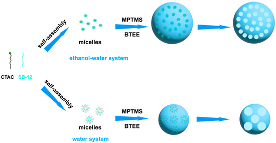 Schematic illustration of preparation of mesoporous organosilica nanospheres in ethanol–water and water systems.