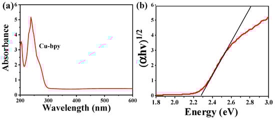 (a) Ultraviolet absorption diagram, and (b) band gap diagram of Cu-bpy.