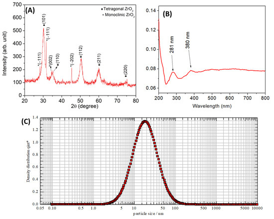 - Dharr, A.; Arjun, A.; Raguram, T.; Rajni, K.S. Influence of pH on the structural, spectral, optical, morphological and photocatalytic properties of ZrO2 nanoparticles synthesized by sol–gel technique. J. Mater. Sci. Mater. Electron. 2020, 31, 15718–15730. [Google Scholar] [CrossRef]