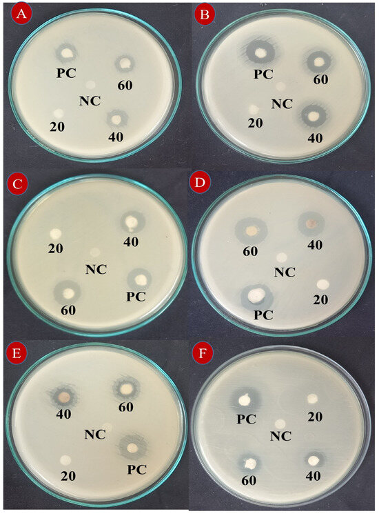 | B. subtilis | S. aureus | S. epidermidis | K. pneumoniae | P. vulgaries | E. coli | |