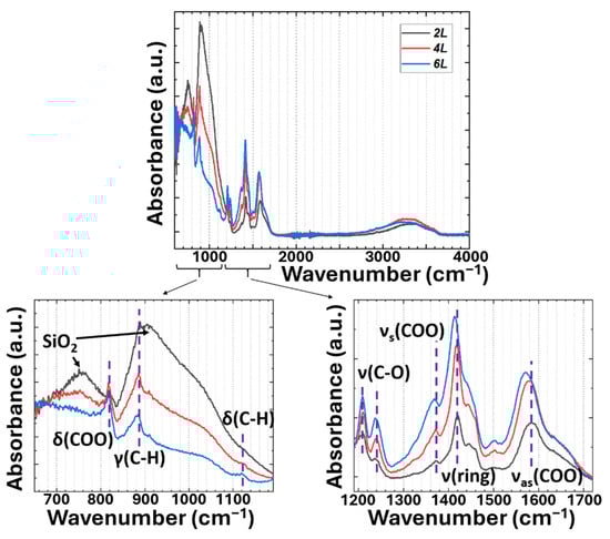 Figure 2, all the IR peaks corresponding to the linker exhibit a redshift with increasing the deposition layers, which could result from the formed conjugated system and the increased mass of Mg-MOF-74 [