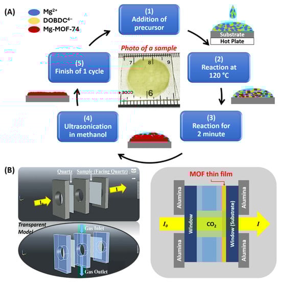 A schematic diagram of the synthesis protocol for Mg-MOF-74 thin films is shown in