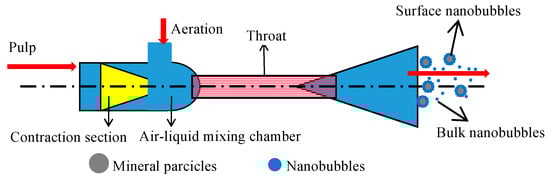 - Oliveira, H.; Azevedo, A.; Rubio, J. Nanobubbles generation in a high-rate hydrodynamic cavitation tube. Miner. Eng. 2018, 116, 32–34. [Google Scholar] [CrossRef]
