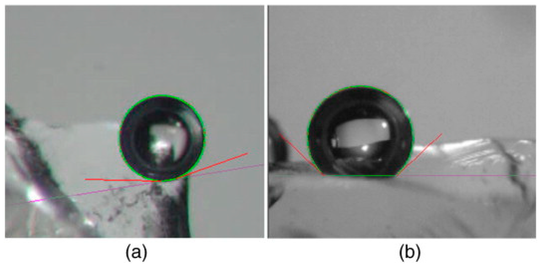 - Song, B.; Walczyk, W.; Schonherr, H. Contact angles of surface nanobubbles on mixed self-assembled monolayers with systematically varied macroscopic wettability by atomic force microscopy. Langmuir 2011, 27, 8223–8232. [Google Scholar] [CrossRef]