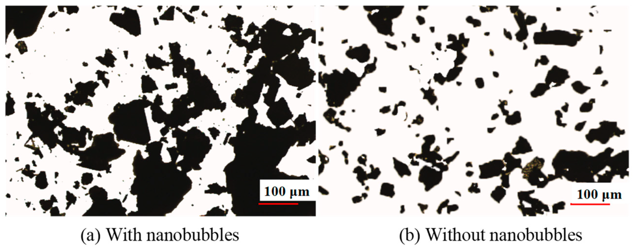 - Ma, F.Y.; Tao, D.P. A Study of Mechanisms of Nanobubble-Enhanced Flotation of Graphite. Nanomaterials 2022, 12, 3361. [Google Scholar] [CrossRef]