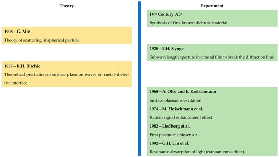 Schematic presentation of theoretical and experimental findings until the year 2000, which form the basis of contemporary plasmonics [13,14,15,16,17,18,19,20,21,22].