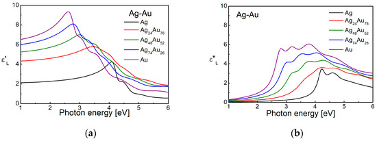 A key point in the case of solving the ellipsometric problem for determining the optical parameters of a system under study by using data from spectral ellipsometric measurements is the choice of an appropriate dispersion model. The most important in this choice is the electronic structure of the studied material. The Drude–Sommerfeld model, where the contribution of interband transitions is constant, was used in earlier works [31]. This model works well in the region where the contribution of free electrons dominates and starts to give deviations from the real values at intensive interband transitions. Therefore, nowadays, the Drude–Lorentz model, discussed in the previous section, is mainly used in the case of ellipsometric studies of plasmonic materials [145,158,159,160,161,162]. For greater freedom with respect to the component describing the contribution of interband transitions, some authors use critical points, as in the case of Ag-Au alloys [82,161], or Gauss-oscillators, for Ag-Al alloys [163], instead of a Lorentz oscillator model. The comparison of the results when critical points of the M1 and M2 type model and the Drude–Lorentz model were used [82] shows that the two models have identical values. It is still unclear to what extent the changes in the d-band in the case of silver and p-block alloys can determine the dispersion pattern. In the case of Ag-Al alloys [163], Gauss-oscillators gave better results for the consideration of the interband transitions for the silver-rich alloys, while for the aluminum-rich ones the Lorentzian oscillators were more appropriate.