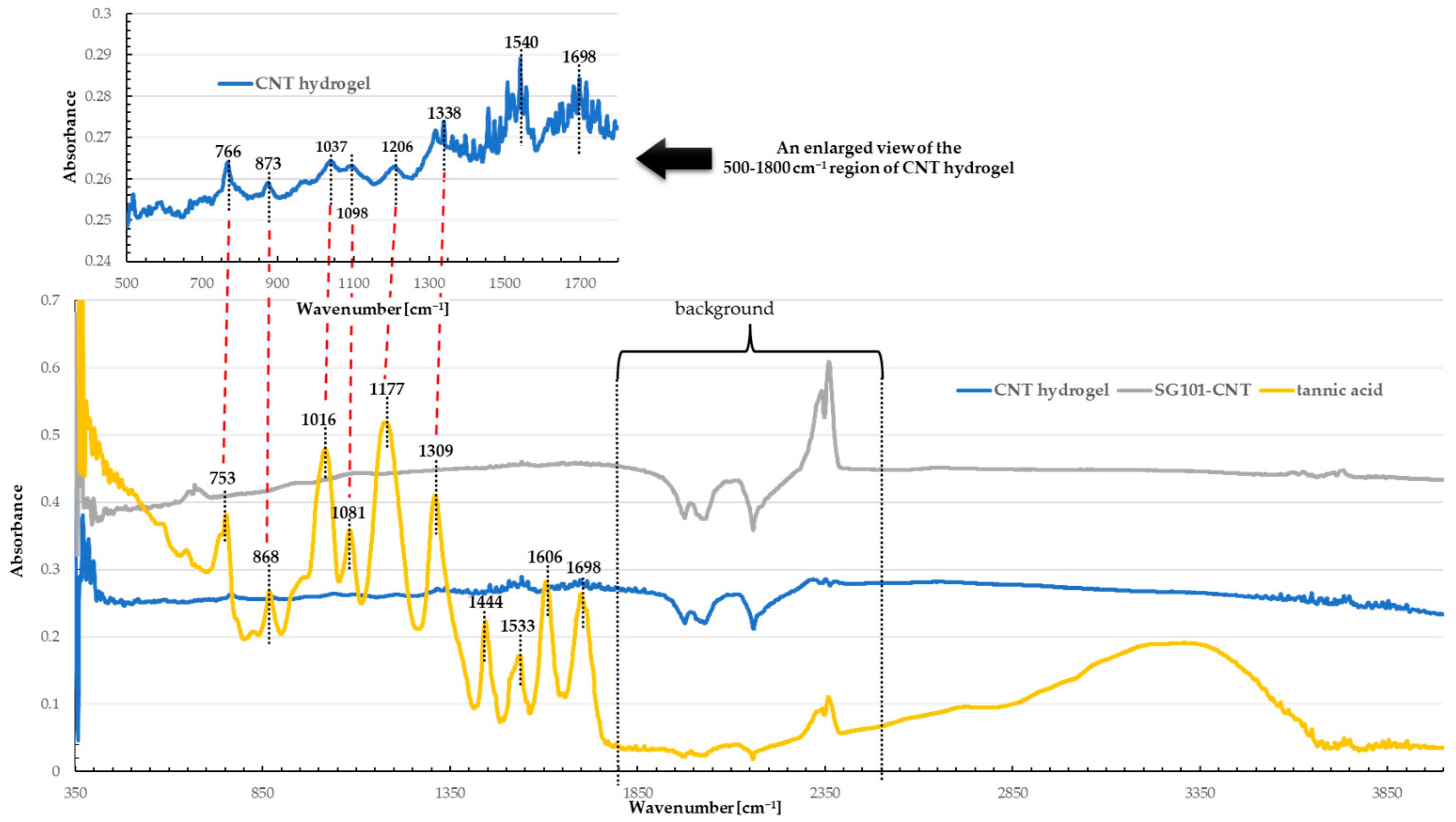 3.2. Investigation of Gelation Feasibility by Combining Tannic Acid with CNTs of Different Diameters