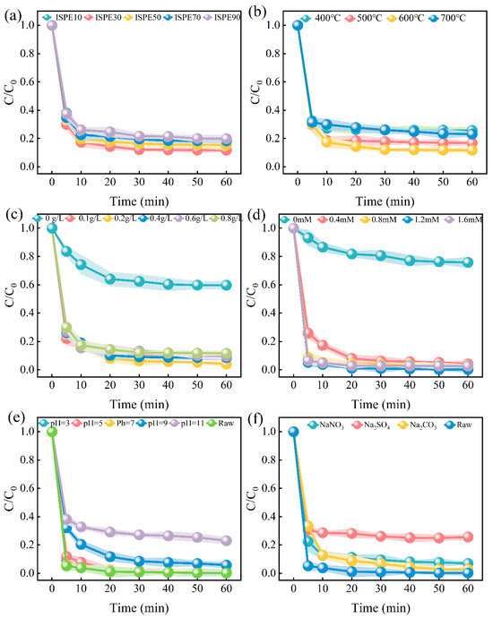 - Jin, Z.A.; Zhao, X.T.; Zhang, M.; Li, Y.; Guo, J.; Lan, Y.; Chen, C. Waste self-heating bag derived CoFe2O4 composite enhances peroxymonosulfate activation: Performance, mechanism, and adaptability under high-salinity conditions. J. Water Process Eng. 2024, 60, 105221. [Google Scholar] [CrossRef]