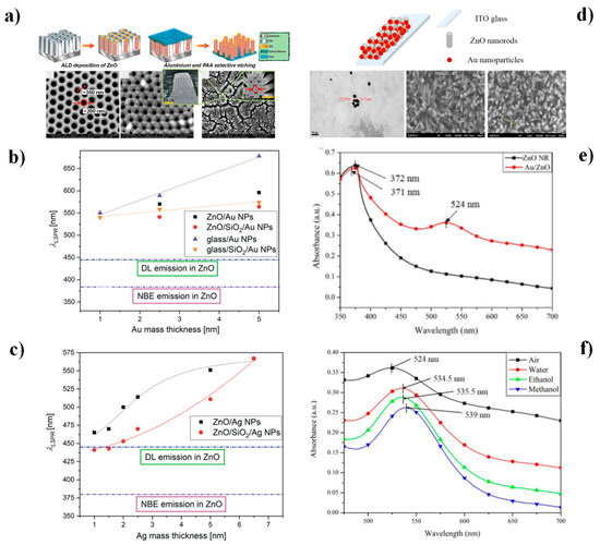 - Włodarski, M.; Nowak, M.P.; Putkonen, M.; Nyga, P.; Norek, M. Surface Modification of ZnO Nanotubes by Ag and Au Coatings of Variable Thickness: Systematic Analysis of the Factors Leading to UV Light Emission Enhancement. ACS Omega 2024, 9, 1670–1682. [Google Scholar] [CrossRef]