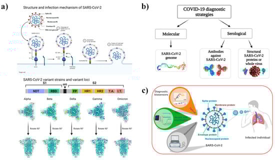 - Drobysh, M.; Ramanaviciene, A.; Viter, R.; Chen, C.F.; Samukaite-Bubniene, U.; Ratautaite, V.; Ramanavicius, A. Biosensors for the Determination of SARS-CoV-2 Virus and Diagnosis of COVID-19 Infection. Int. J. Mol. Sci. 2022, 23, 666. [Google Scholar] [CrossRef] [PubMed]