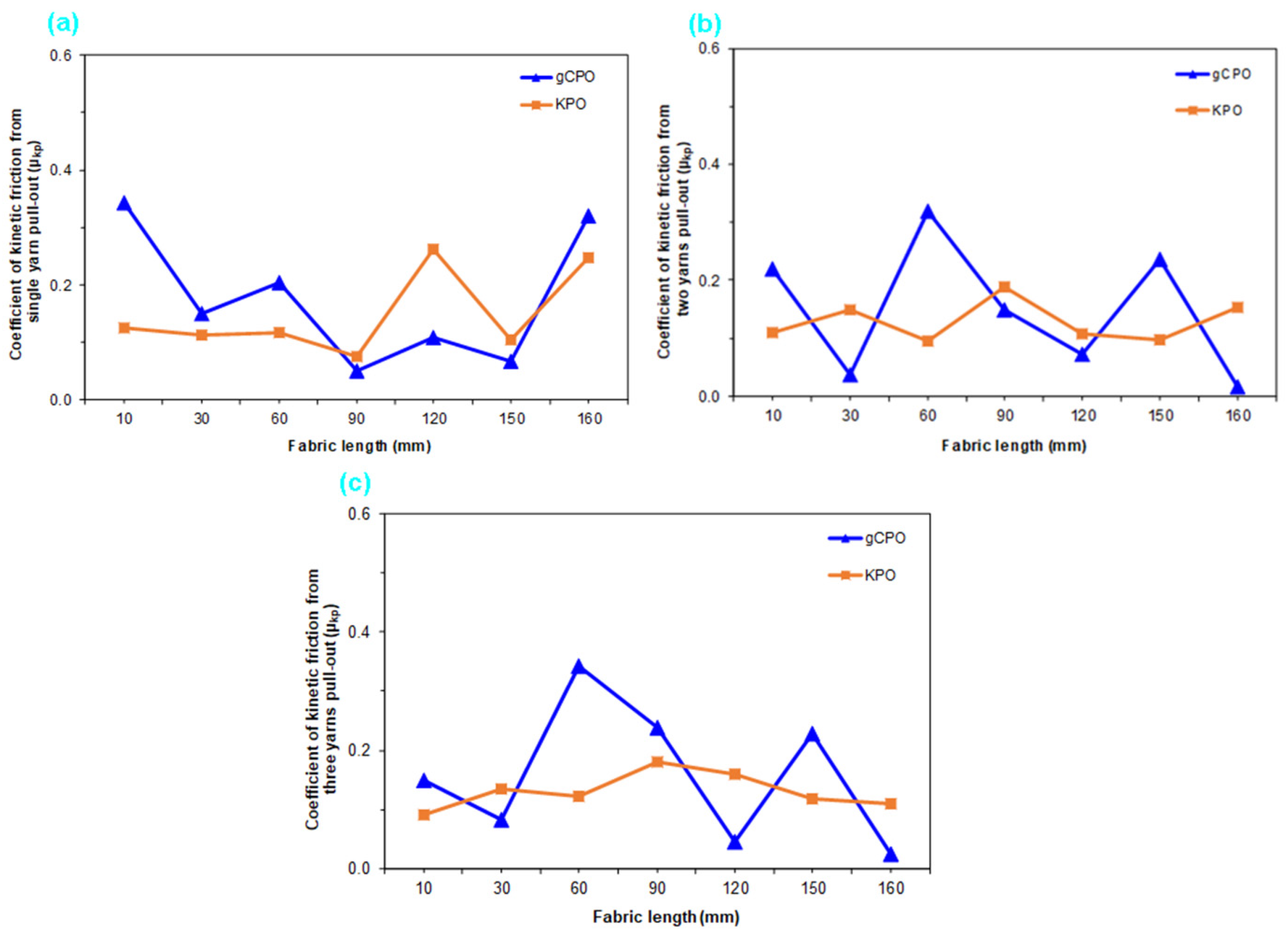 | Label | Fabric Opening Length (a, mm) | Single-Yarn Pull-Out Force (F, N) | Single-Yarn Displacement (δ, mm) | Single-Yarn Fracture Toughness (Gpf, J/m2) | Two-Yarn Pull-Out Force (F, N) | Two-Yarn Displacement (δ, mm) | Two-Yarn Fracture Toughness (Gpf, J/m2) | Three-Yarn Pull-Out Force (F, N) | Three-Yarn Displacement (δ, mm) | Three-Yarn Fracture Toughness (Gpf, J/m2) |