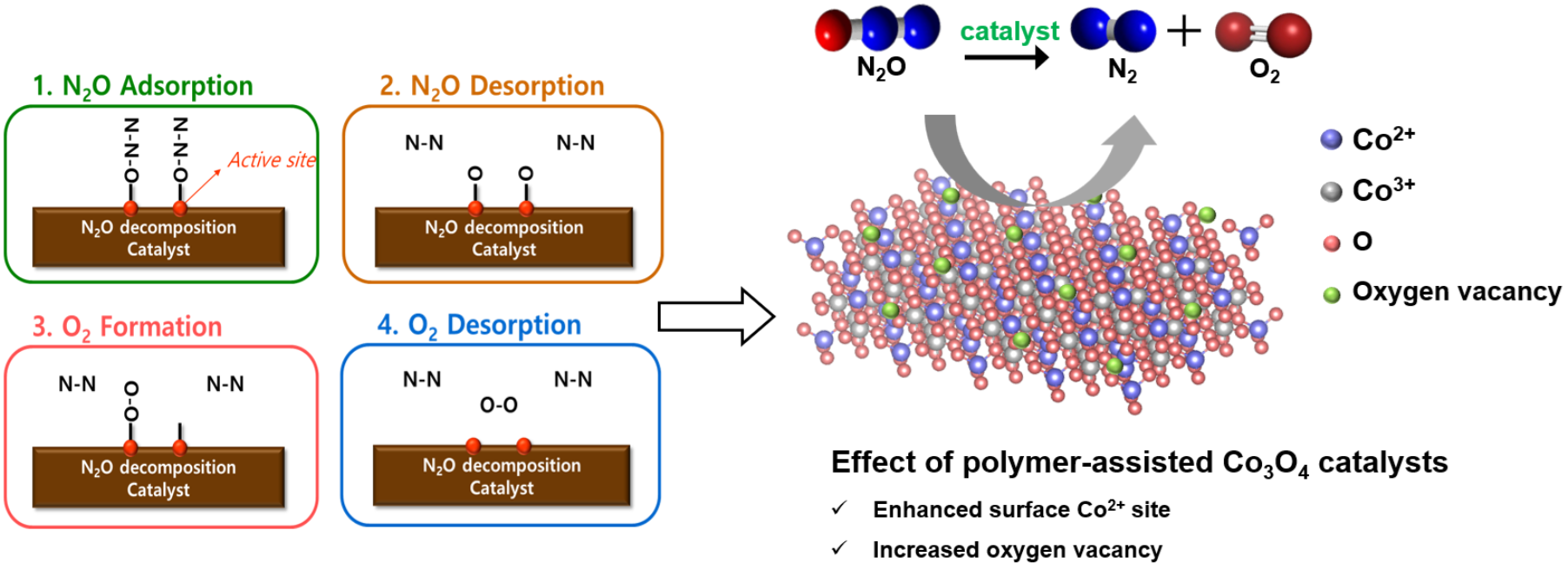 Kim, N.; Kim, S.-J.; Seo, S.-H.; Lee, M.-J.; Jeong, B.; Kim, H.-D.; Nam, T.W.; Ye, B. Polymer-Assisted Synthesis of Co3O4 Spinel Catalysts with Enhanced Surface Co2+ Ions for N2O Decomposition. Nanomaterials 2025, 15, 1642. https://doi.org/10.3390/nano15211642