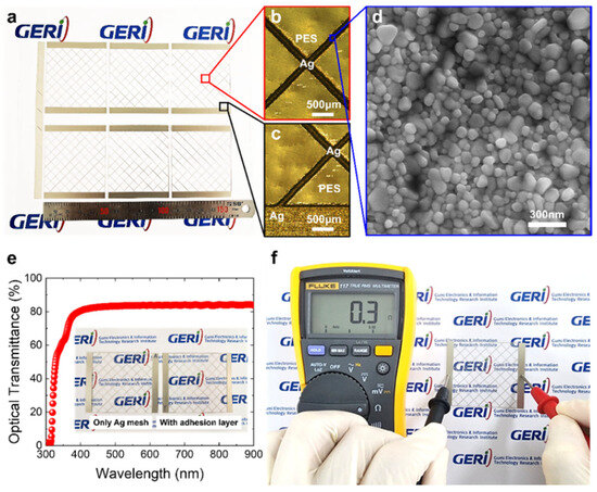 - Chen, X.; Guo, W.; Xie, L.; Wei, C.; Zhuang, J.; Su, W.; Cui, Z. Embedded Ag/Ni Metal-Mesh with Low Surface Roughness As Transparent Conductive Electrode for Optoelectronic Applications. ACS Appl. Mater. Interfaces 2017, 9, 37048–37054. [Google Scholar] [CrossRef]