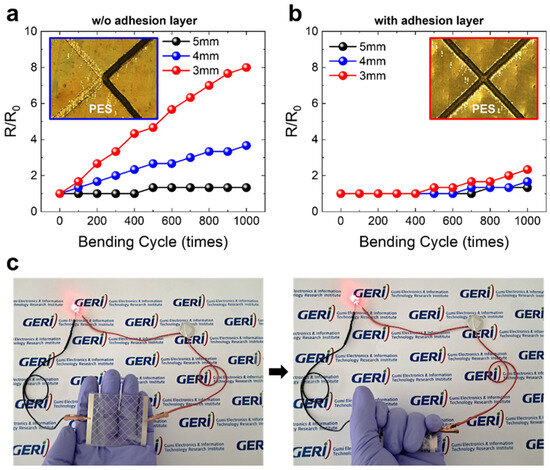 - Kim, H.-J.; Park, S.Y.; Park, J.; Ko, Y.; Park, S.E.; Kim, Y.; Kim, J. Improved Adhesion of Printed Ag Electrodes for Flexible Transparent Display Applications. Mater. Adv. 2025, 6, 547–551. [Google Scholar] [CrossRef]