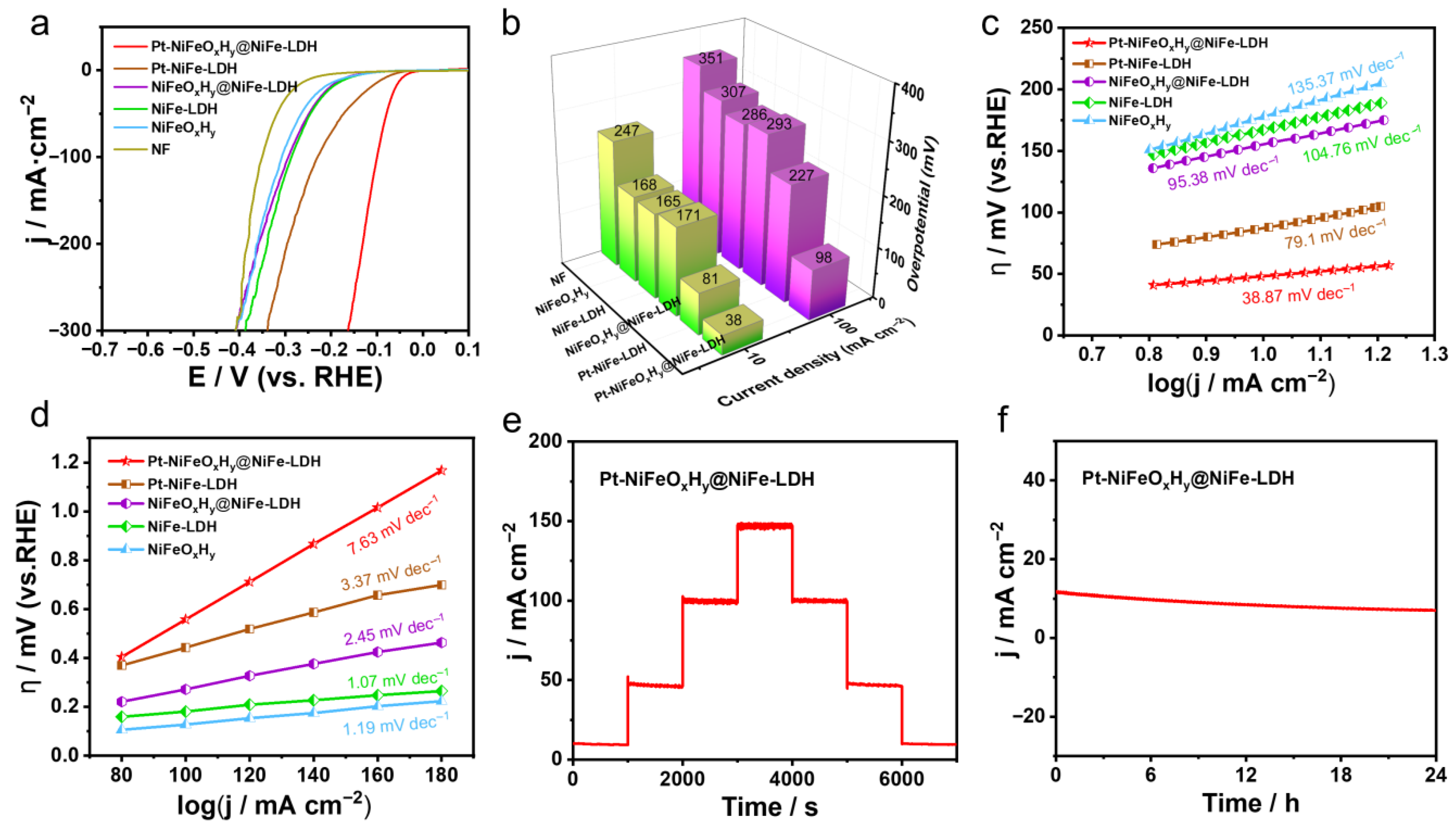 Durable Pt-Decorated NiFe-LDH for High-Current-Density Electrocatalytic Water Splitting Under Alkaline Conditions