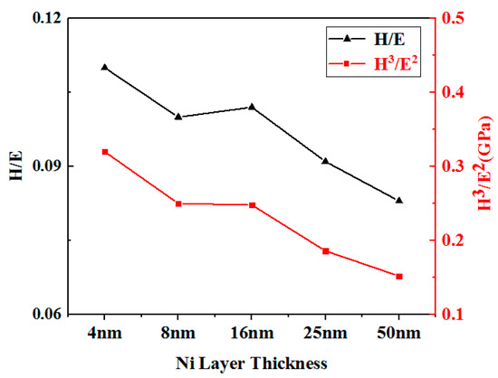 H/E, H3/E2 of multilayer films with different nickel layer thicknesses.