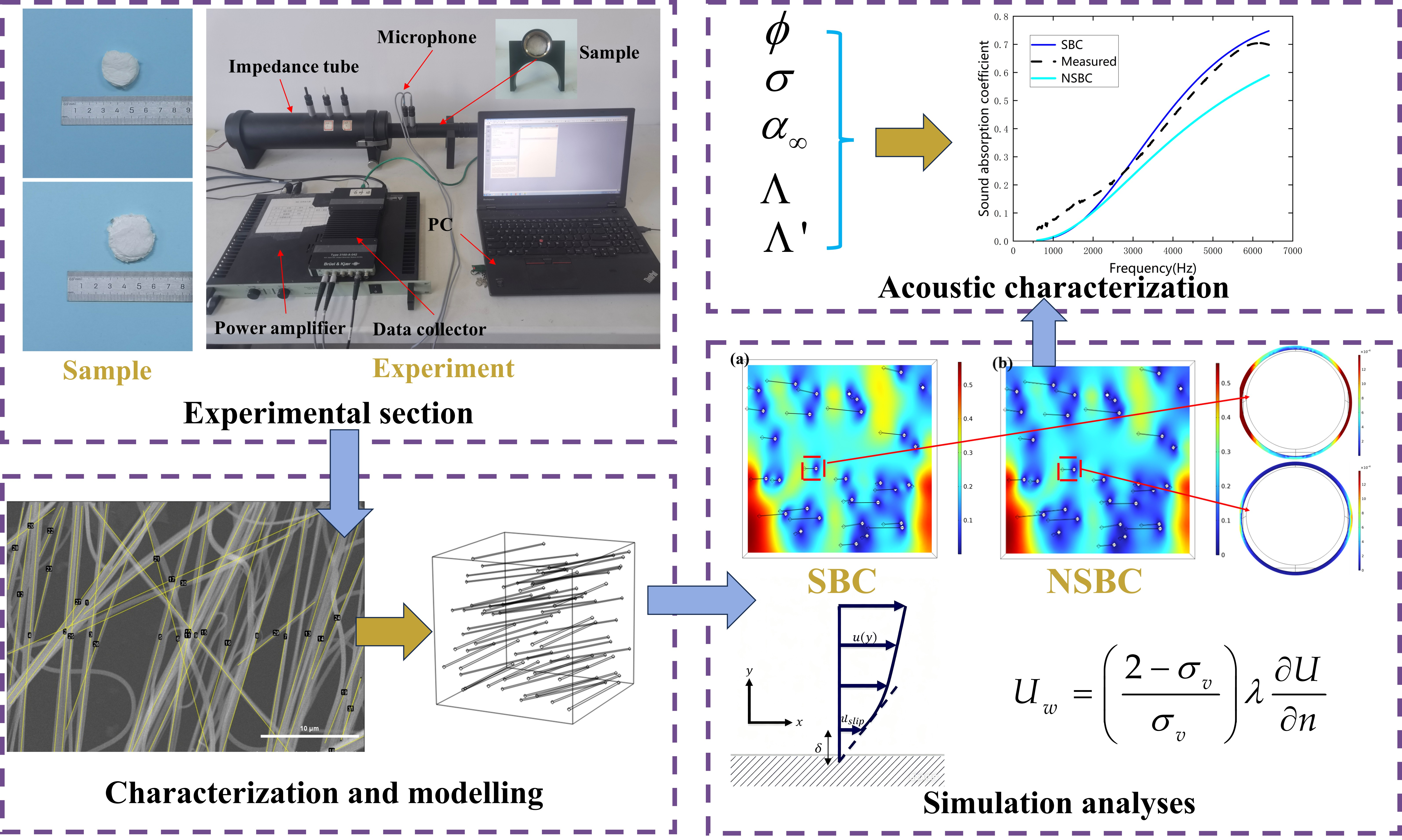 Despite considerable advances in modeling fibrous materials, conventional multiscale models still have limitations in describing nanofiber porous media. Owing to nanoscale pore sizes and interfacial slip-flow phenomena, these models often lead to large deviations in estimating internal flow-field distributions, thereby affecting the accuracy of key microstructural parameters required for acoustic prediction [15,16].