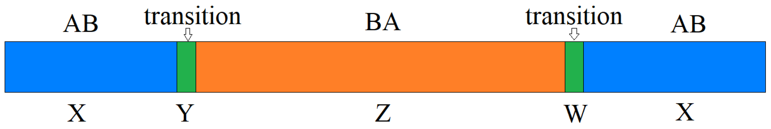 Figure 5, X represents the stacking order AB, Z represents the stacking order BA, and Y, W are disordered. The X and Z region grows as the dynamics start and two interfaces will be created between them. As shown in