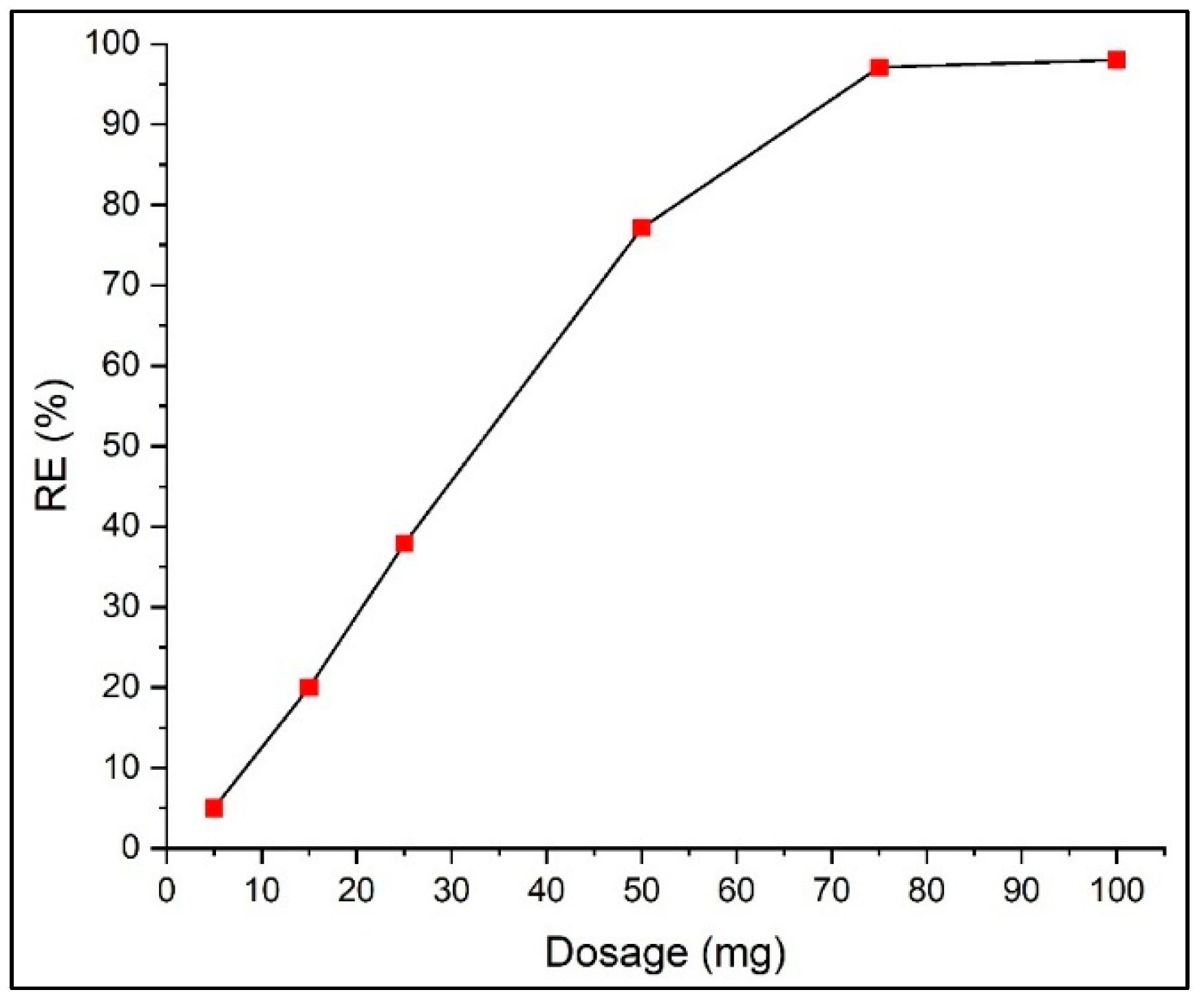 Batch adsorption experiments were conducted in 50 mL amber glass Erlenmeyer flasks to minimize potential photodegradation of PR molecules. Each flask contained varying amounts of adsorbent (5–100 mg) and 50 mL of PR solution with initial concentrations ranging between 50 and 500 mg L