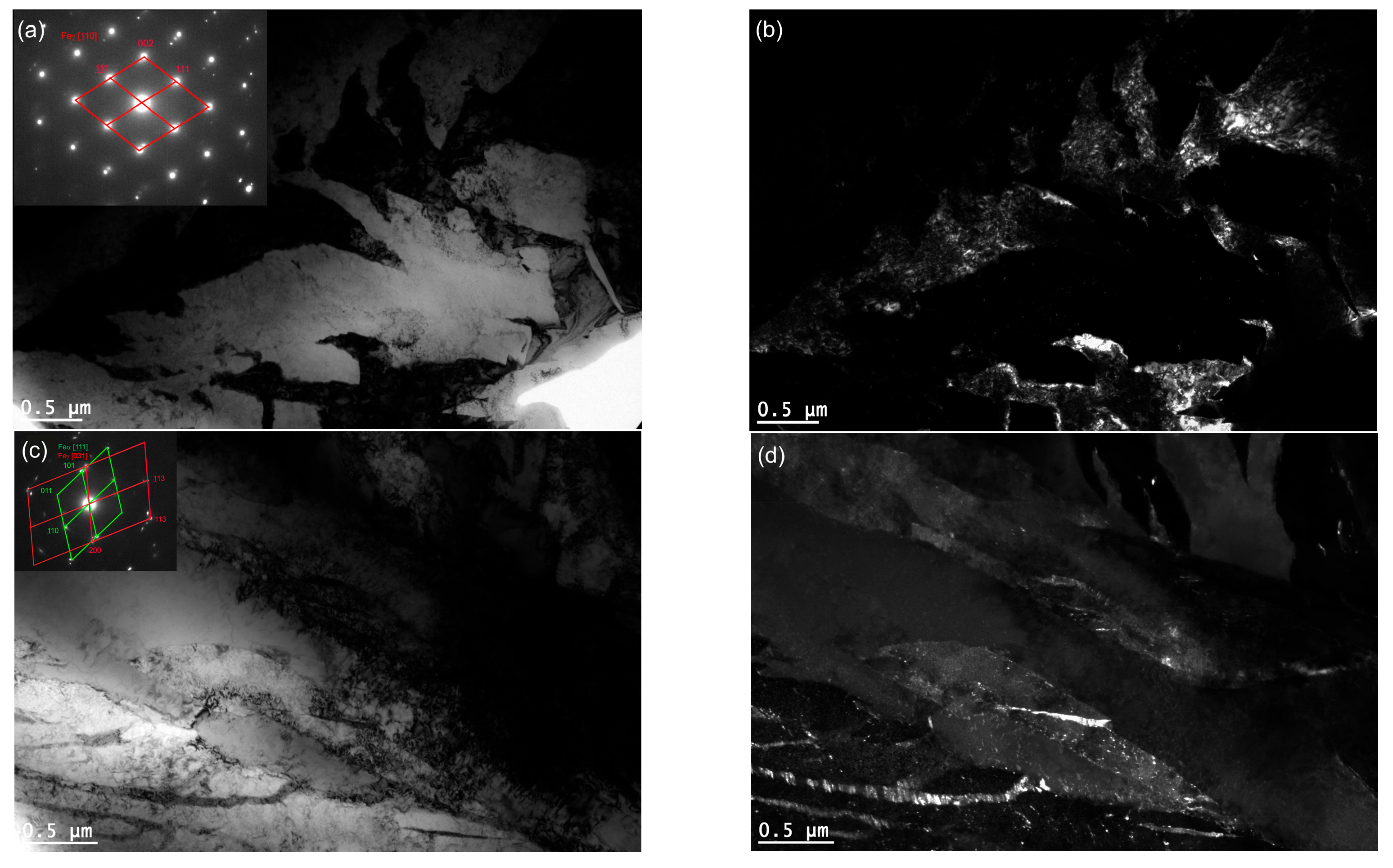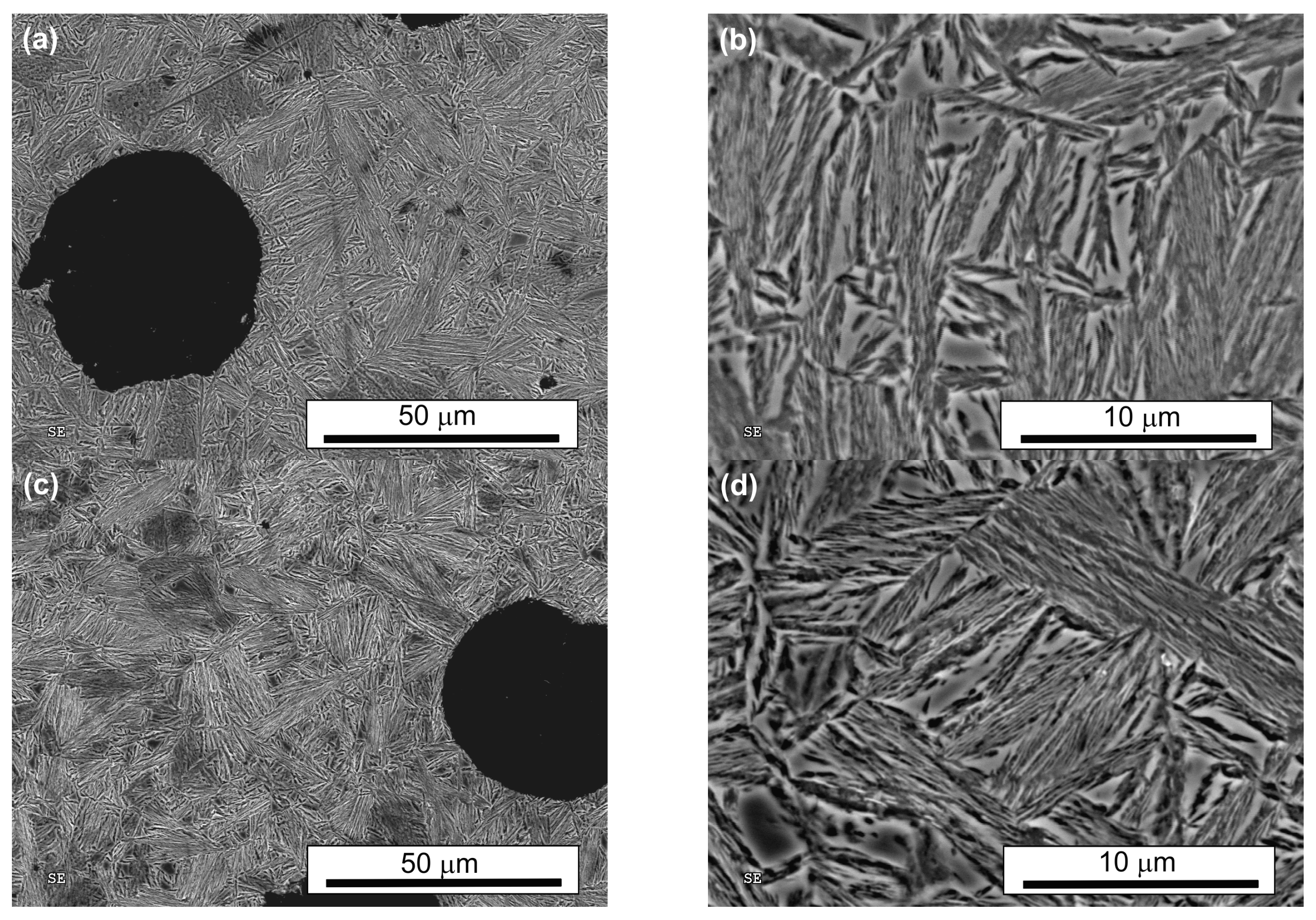 - Chang, L.C.; Bhadeshia, H.K.D.H. Austenite Films in Bainitic Microstructures. Mater. Sci. Technol. 2014, 11, 874–882. [Google Scholar] [CrossRef]