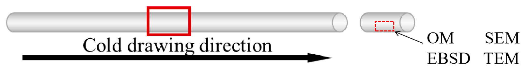 4.1. The Influence of Cold-Drawing Deformation on Microstructure