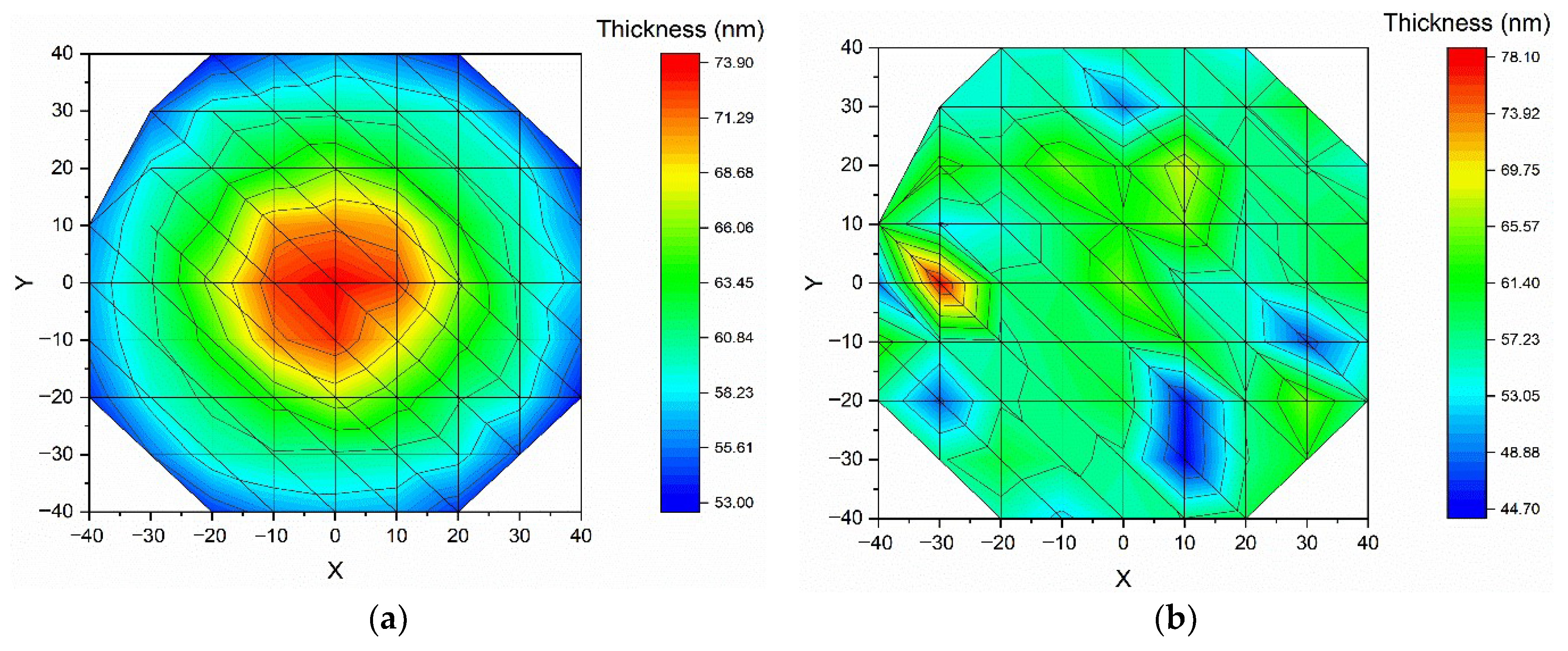 - Vakulov, Z.; Khakhulin, D.; Zamburg, E.; Mikhaylichenko, A.; Smirnov, V.A.; Tominov, R.; Klimin, V.S.; Ageev, O.A. Towards Scalable Large-Area Pulsed Laser Deposition. Materials 2021, 14, 4854. [Google Scholar] [CrossRef]