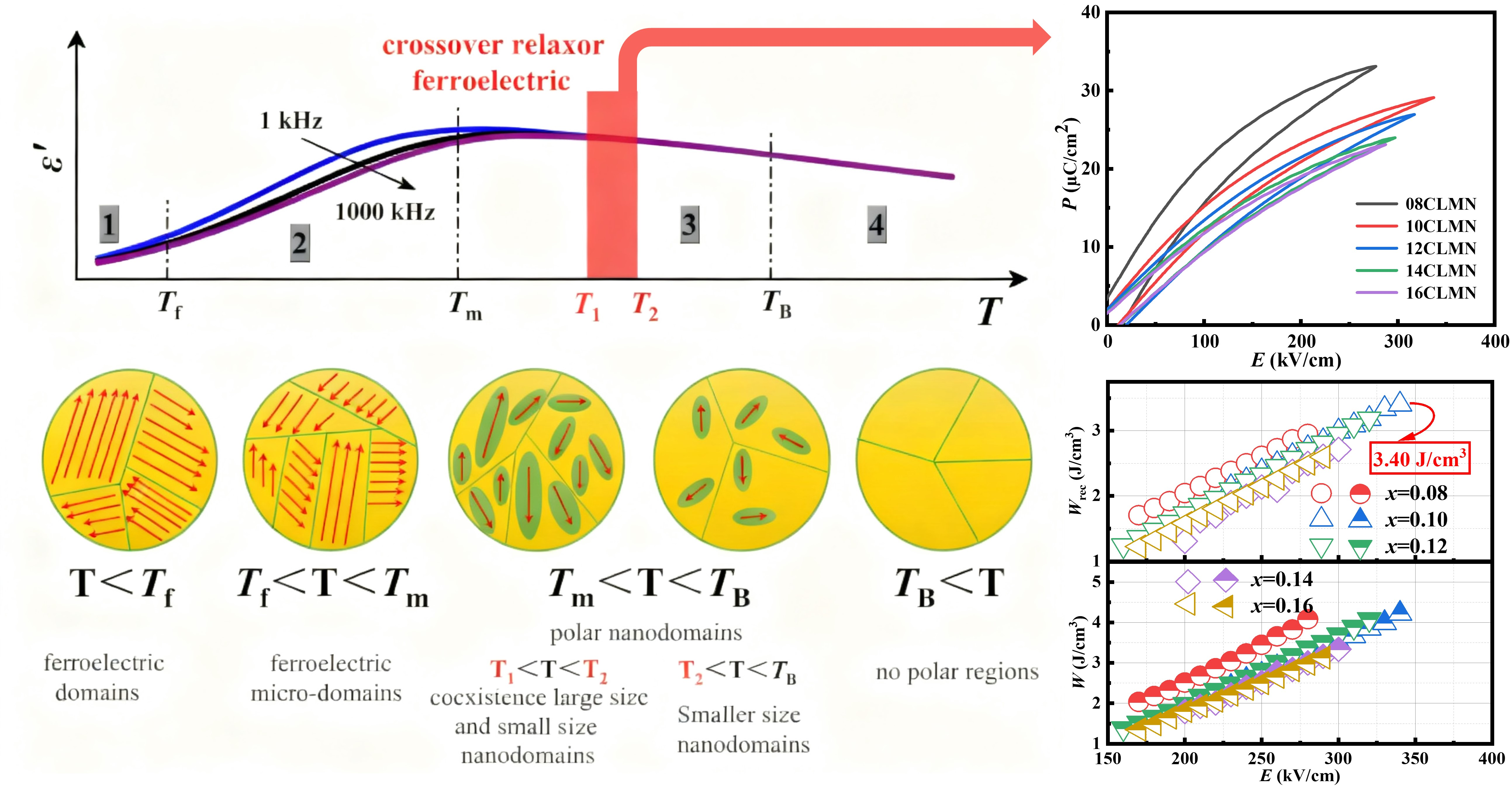 - Zhong, W.T.; Liu, X.Y.; Zheng, X.T.; Zheng, P.; Wang, J.Q.; Sheng, L.S.; Zheng, L.; Fan, Q.L.; Bai, W.F.; Zhang, Y. Realizing exceptional energy storage performance in tungsten bronze-based ceramics via weakly coupled relaxor and grain boundary reinforcement designs. ACS Appl. Mater. Interfaces 2025, 17, 12375–12383. [Google Scholar] [CrossRef]